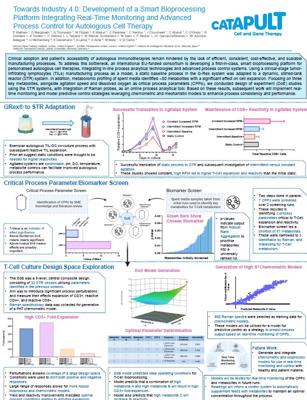 Patrick Statham obtained his degree in Biochemistry from the University of Manchester in 2017. During the degree, he spent a year at the University of South Australia working on a cell therapy product for wound healing applications. He completed a PhD in Tissue Engineering and Regenerative Medicine from the University of Leeds (2021), investigating decellularised scaffolds to support autologous cell therapies for cartilage repair. He joined Cell and Gene Therapy Catapult in 2021, as a Bioprocessing Scientist (CGTC). At CGTC he works in Upstream Bioprocessing with autologous and allogeneic cell therapies across a range of bioreactor platforms, specialising in transitioning 2D open process into 3D closed processes. Patrick will be responsible for the STR process development on the Achilles SMARTER project.