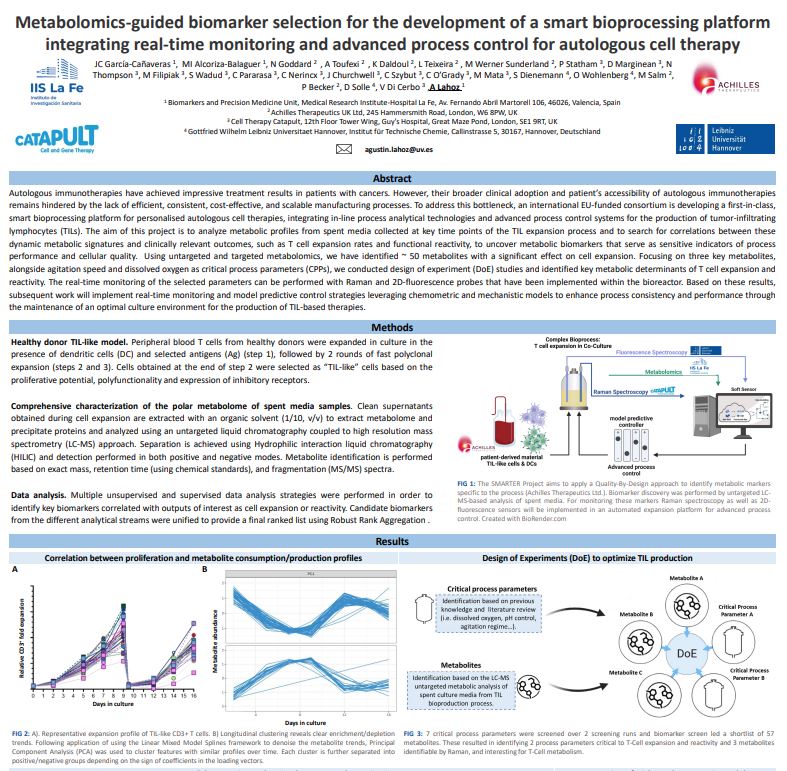 Dr. Agustín Lahoz holds a PhD in Pharmacy (Organic Chemistry) and a MSc in Biostatistics from the University of Valencia. He is the leader of the Biomarkers and Precision Medicine Unit and the Scientific Director of the Metabolomics Core Facility at the Health Research Institute Hospital La Fe. Agustín Lahoz’s laboratory aims to develop and applicate mass spectrometry and stable isotope-assisted metabolomics for studying cellular metabolism and biomarker discovery. Currently, his group focuses on modulating cancer cell metabolism and immune metabolism as avenues for developing more effective therapies. Agustin Lahoz is the coordinator of the work developed at IIS-La Fe within the SMARTER project.