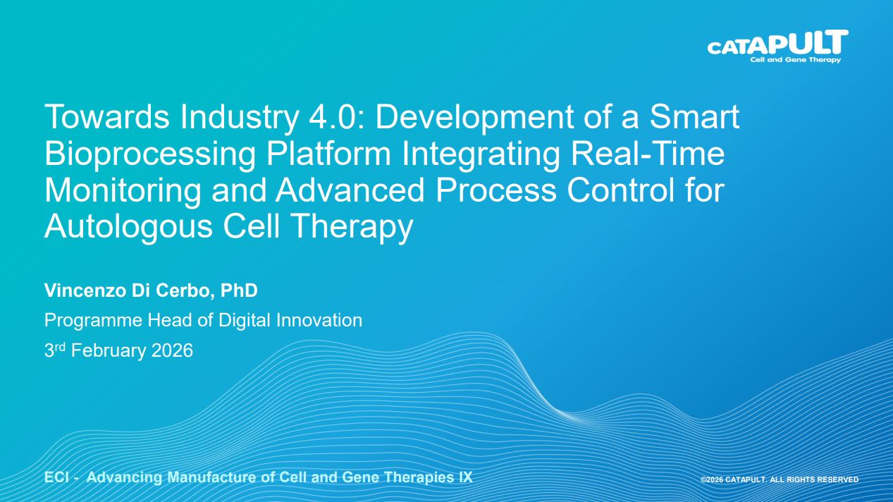 Dr Vincenzo Di Cerbo, Lead Scientist, has 15 years of R&D experience within basic science and applied fields. His expertise includes development of novel analytics, cell engineering and multi-omics data analysis applied to the development of various cell and gene therapy areas encompassing viral vectors, immuno-oncology and pluripotent stem cells. Dr Di Cerbo joined Cell and Gene Therapy Catapult in 2017 and he is currently leading a programme aiming at enhancing cell and gene therapy design, bioprocessing, and characterisation through the utilisation of viral and non-viral delivery systems, cell engineering, multi-omics and in-process control approaches. Dr Di Cerbo holds a PhD from the Max-Plank Institute of Immunology and Epigenetics in Freiburg (Germany) and has completed a postdoc at Oxford University studying chromatin and transcriptional gene regulation, honing his training in molecular biology, next-generation sequencing, and bioinformatics.